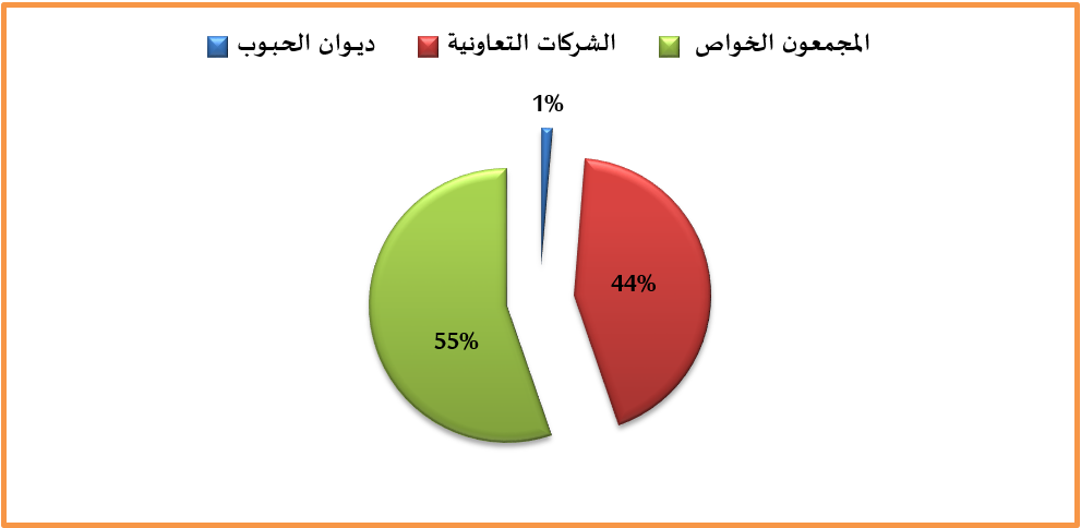 هذا وتولىّ المجمعون الخواص تجميع حوالي 3,6 مليون قنطار تقريبا بنسبة 55% من الكميات المجمعة بينما سجلت الشركات التعاونية 44 % تقريبا فيما واصل ديوان الحبوب في نشاط التجميع بنسبة تقدر بـ 1 % من جملة الكمّيات المجمّعة علما أنّ تدخل الديوان ينحصر على مستوى الجهات ذات الانتاج المحدود.